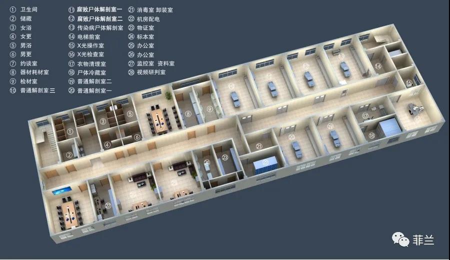 2017年,烟台市公安局建设最高标准的解剖中心,在考察过由菲兰承建的司法部司法鉴定科学研究院的解剖和病理实验室,最终选定由菲兰负责一体化工程项目建设。