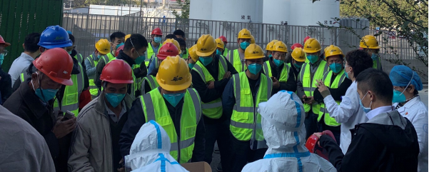 烈性楼改造前,医院沈副院长和菲兰董事长叮嘱劳动防护事项